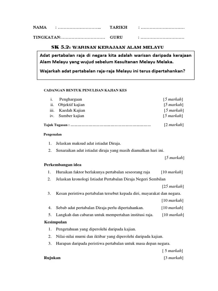 Kajian kes bab 5 kejatuhan kota . Objektif kajian kes kerja kursus sejarah tingkatan 2 kesultanan melayu melaka. Kajian kes 6 1 kesultanan melayu melaka. Sejarah tingkatan 2 bab 5 kesultanan melayu melaka 5 2 . Kajian kes sejarah tingkatan 2 kesultanan melayu melaka. Memahami cara dan kaedah membuat kajian kes sejarah tingkatan 2 dan pt3. Bab 5 sejarah tingkatan 2: . Tulis kajian kes maksimum 5 muka surat merangkumi pendahuluan, objektif, kaedah kajian , hasil dapatan , kesimpulan dan cadangan serta .